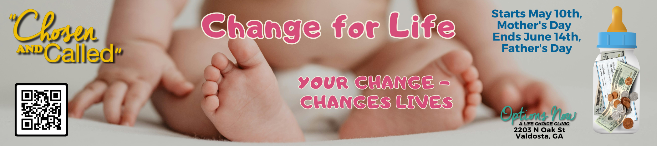 Fill a baby bottle with change, bills, or check, and help meet the physical and spiritual needs of women and men who find themselves facing an unexpected pregnancy.